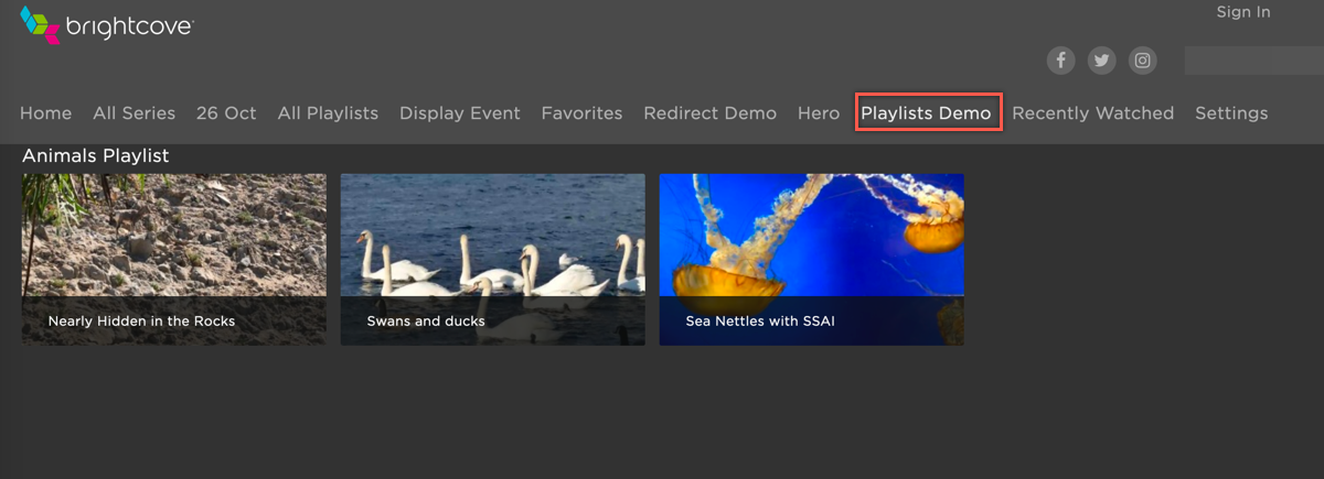 5. Los vídeos y listas de reproducción de Video Cloud ahora deberían estar en Brightcove Beacon. En el menú superior, haz clic en la pestaña Listas de reproducción .