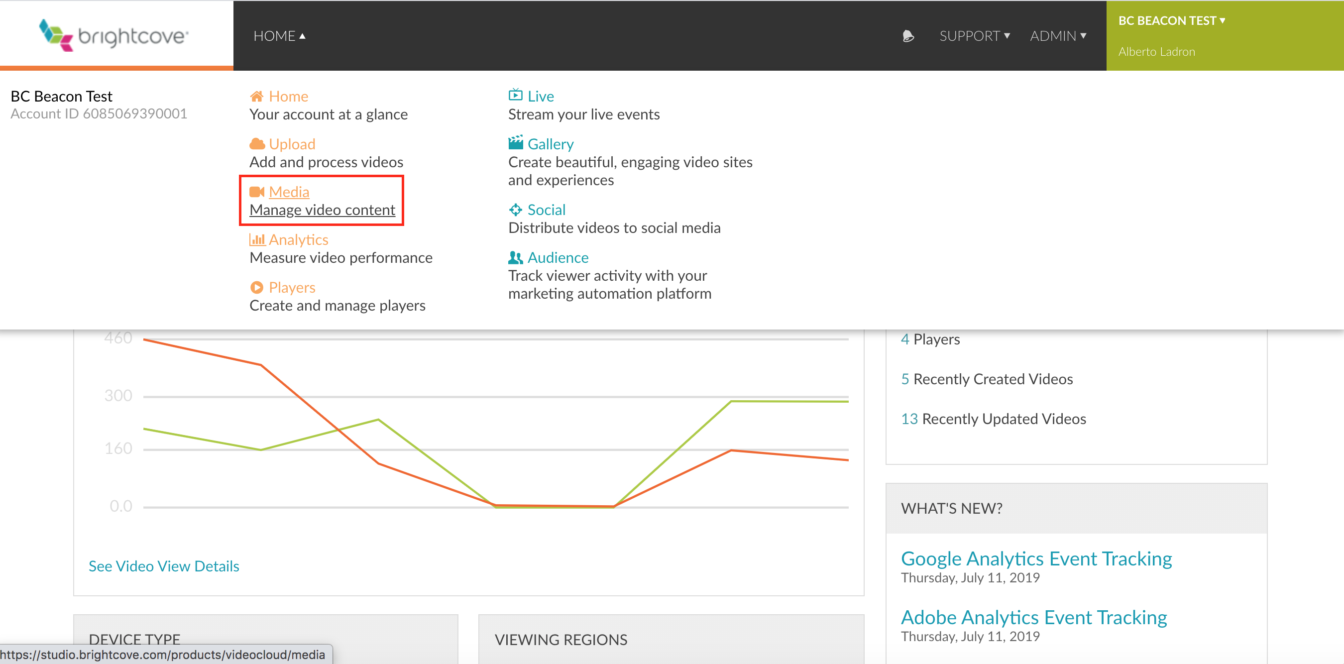 1. Inicie sesión en su cuenta de Brightcove Beacon.